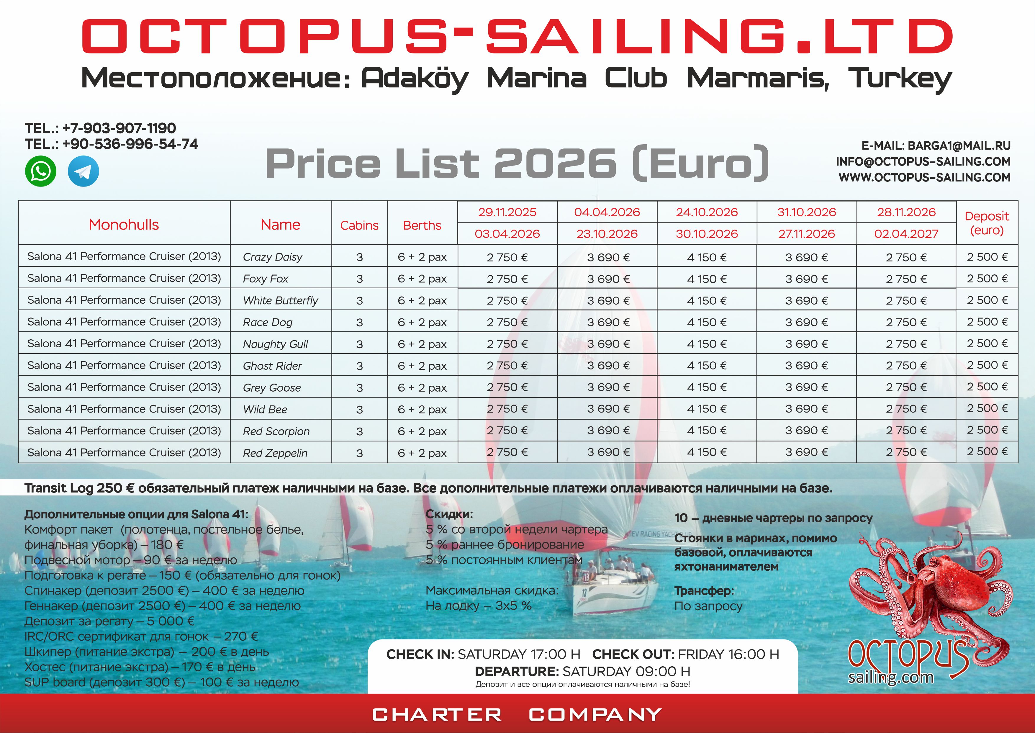 Круизы на яхте. Регаты. Обучение яхтингу.